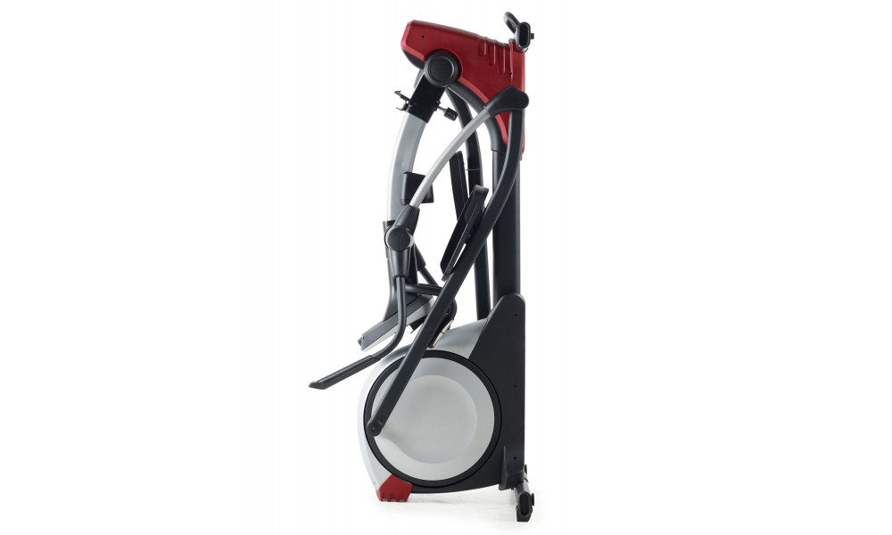 Домашний эллиптический тренажер с классическим заднеприводным расположением 10 кг маховика и длиной шага 46 см. Складная конструкция! Отличная эргономика движения! 18 уровней бесшумного магнитного сопротивления с электронной регулировкой одним касанием, 18 встроенных программ тренировок. Сенсорные датчики пульса Dual EKG™ Grips расположены на рукоятках. Большой 5" LCD-дисплей с звуковой системой и возможностью подключения iPod ®. Держатель для бутылки и транспортировочные ролики.
